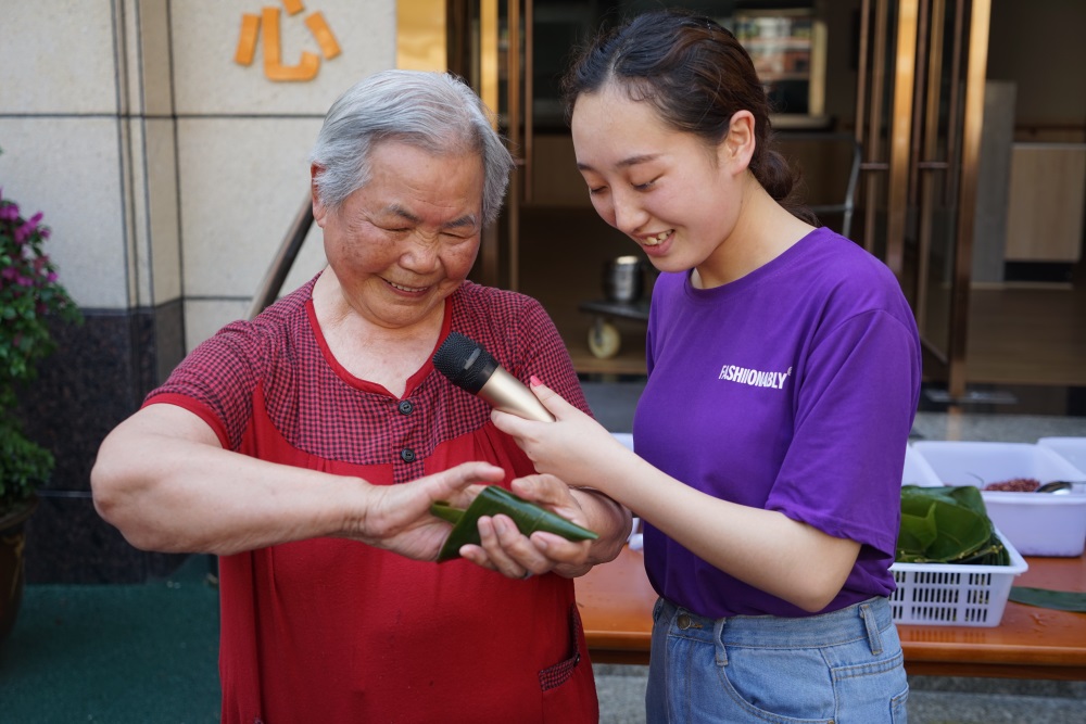 老人們自己動手包粽子迎端午,捧著香噴噴的粽子,老人們臉上洋溢著幸福的笑容。饒碧靜婆婆說:“每逢節(jié)日鶴鳴山老年養(yǎng)護(hù)中心都會舉辦一些活動陪我們過節(jié),我們很開心、很快樂,希望鶴鳴山老年養(yǎng)護(hù)中心越辦越好?!别B(yǎng)護(hù)中心空氣中彌漫著粽子的芳香,耳畔不時傳來老人們幸福的笑聲。
